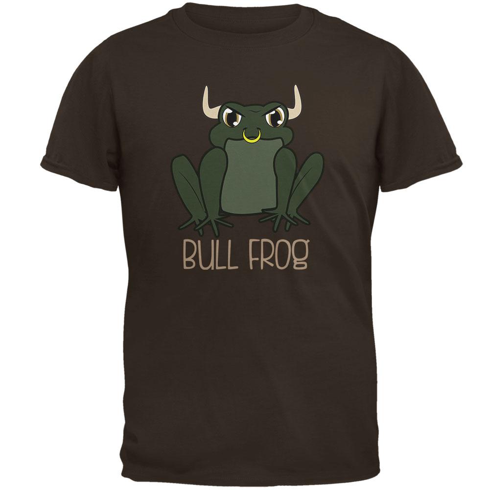 What do you imagine when you hear the name "Bull Frog"? We imagine this! This Animal World design is printed on a 100% cotton men's t-shirt, featuring a frog with horns and a septum piercing.