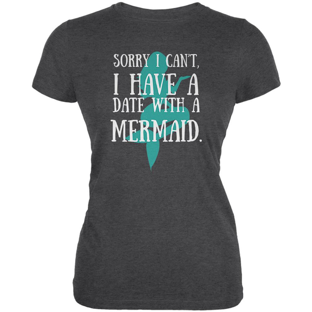 What better way to avoid plans then a date with a Mermaid! This Old Glory design features the aqua silhouette of mermaid with the text: "Sorry I can't, I have a date with a Mermaid." and is printed on a 100% cotton juniors t-shirt.