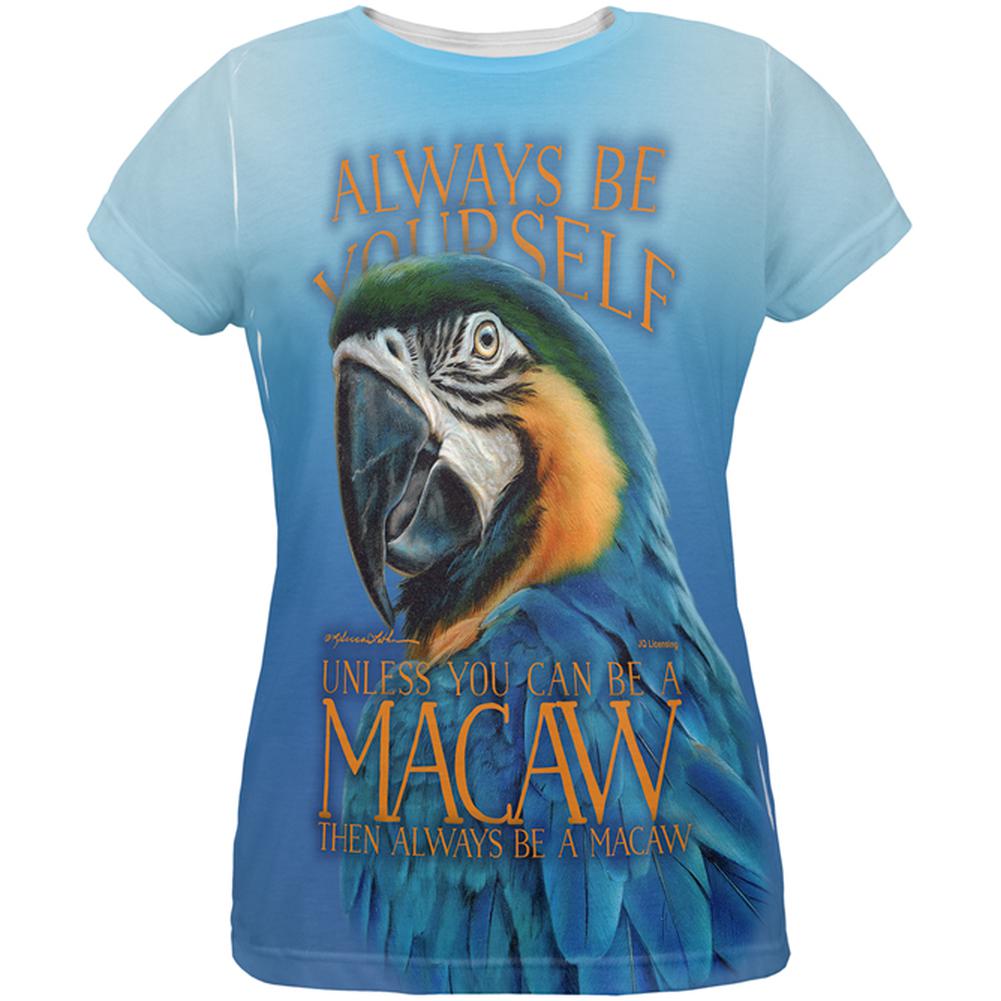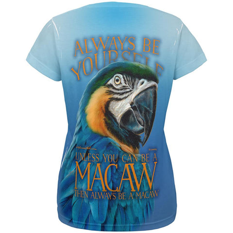 Rebecca Latham. You should always be yourself! If you can't, the only thing to do is be an exotic blue macaw! This Animal World design is printed on a polyester women's t-shirt, featuring the text "Always Be Yourself, Unless You Can Be An Exotic Blue Macaw, Then Always Be An Exotic Blue Macaw". The dye sublimation process creates slight imperfections that are unique to each item.