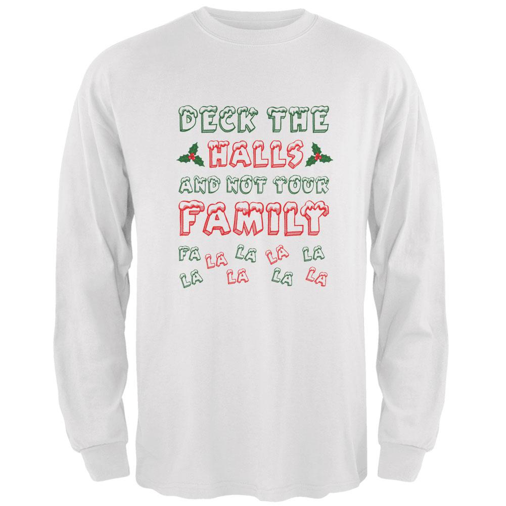 Show your christmas spirit and frustration for the inevitable intersection with your extended family this holiday season with this hoodie, featuring the text "Deck The Halls And Not Your Family". This Old Glory design is printed on a 100% Cotton Men's Long Sleeve T-Shirt.