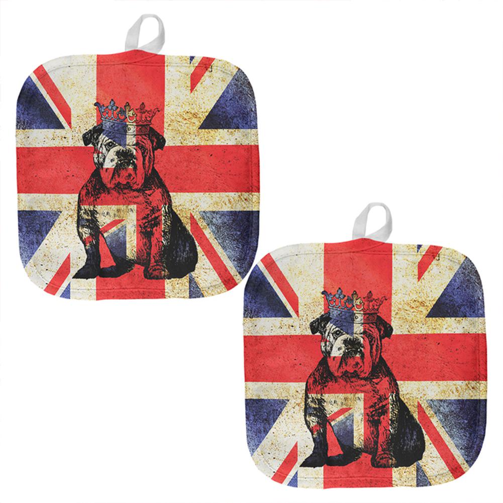 Rock this English Bulldog design, featuring an adorable bulldog with a crown and a distressed British flag background. Printed on these cotton/polyester pot holders. The dye sublimation process creates slight imperfections that are unique to each item.