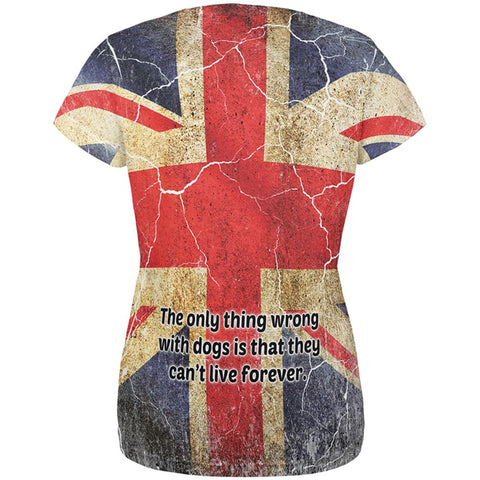 Lucia Guarnotta. Remember your furry one with this beautiful Union Jack design of an English Bulldog gracing the front, and the words, "The only thing wrong with dogs is that they can't live forever," on the back. This Animal World exclusive design is printed on a polyester women's t-shirt. The dye sublimation printing process causes slight differences that are unique to each individual garment.