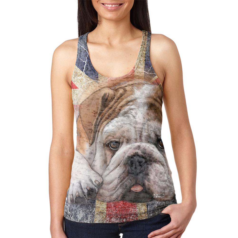 Lucia Guarnotta. Remember your furry one with this beautiful Union Jack design of an English Bulldog gracing the front, and the words, "The only thing wrong with dogs is that they can't live forever," on the back. This Animal World exclusive design is printed on a polyester junior's burnout racerback tank top. The dye sublimation printing process causes slight differences that are unique to each individual garment.