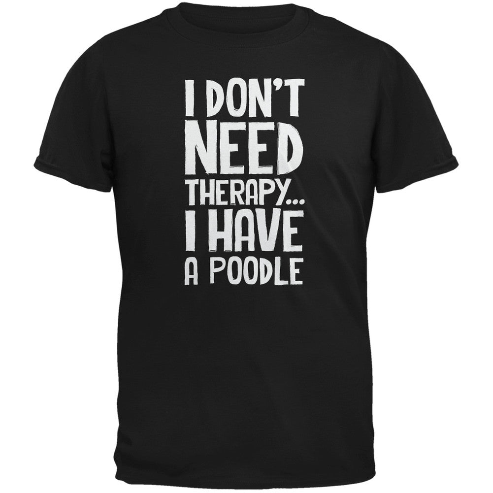 There's nothing like confiding in man's best friend! This exclusive Animal World design is printed on a 100% cotton adult t-shirt, featuring the text, "I Don't Need Therapy... I Have A Poodle," on the front.