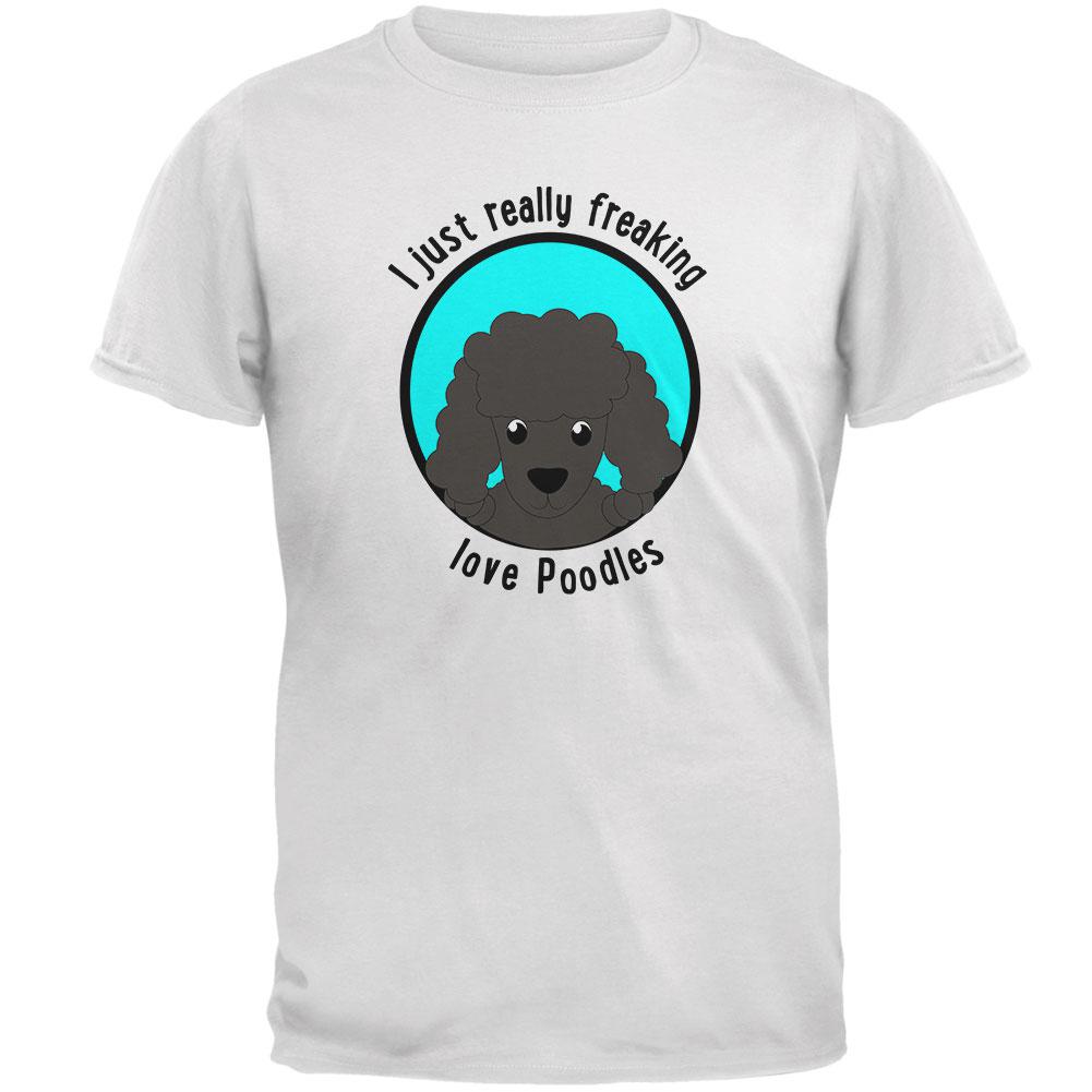 Show your love for your favorite dog breed with this adorable tee. This Animal World design is printed on a 100% cotton men's t-shirt, featuring the text "I just really freaking love poodles".