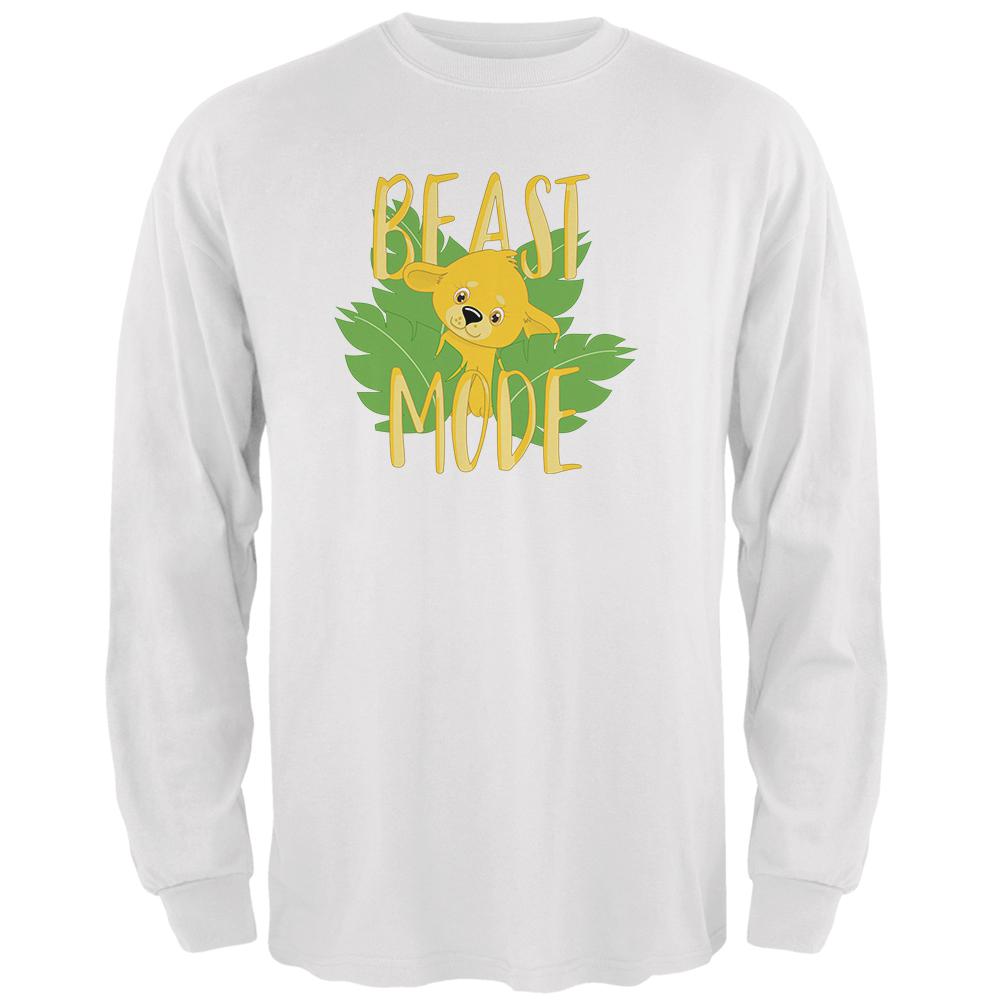 Go full beast mode with this adorable shirt! Featuring a lion graphic with the text "Beast Mode", this Animal World design is printed on a 100% cotton men's long sleeve t-shirt.