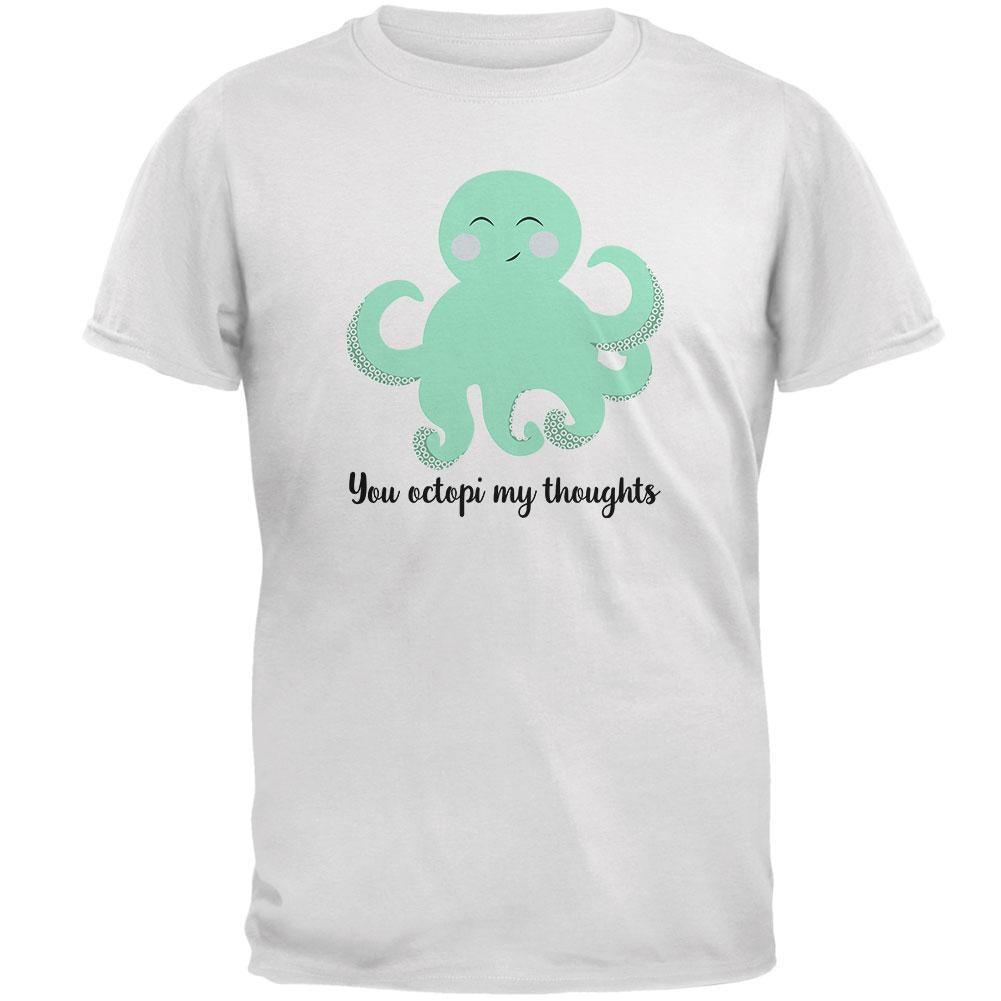 This tee is the perfect gift for the one and only person whose always on your mind. This Animal World design is printed on a 100% cotton men's t-shirt, featuring an octopus graphic with the text "You octopi my thoughts".
