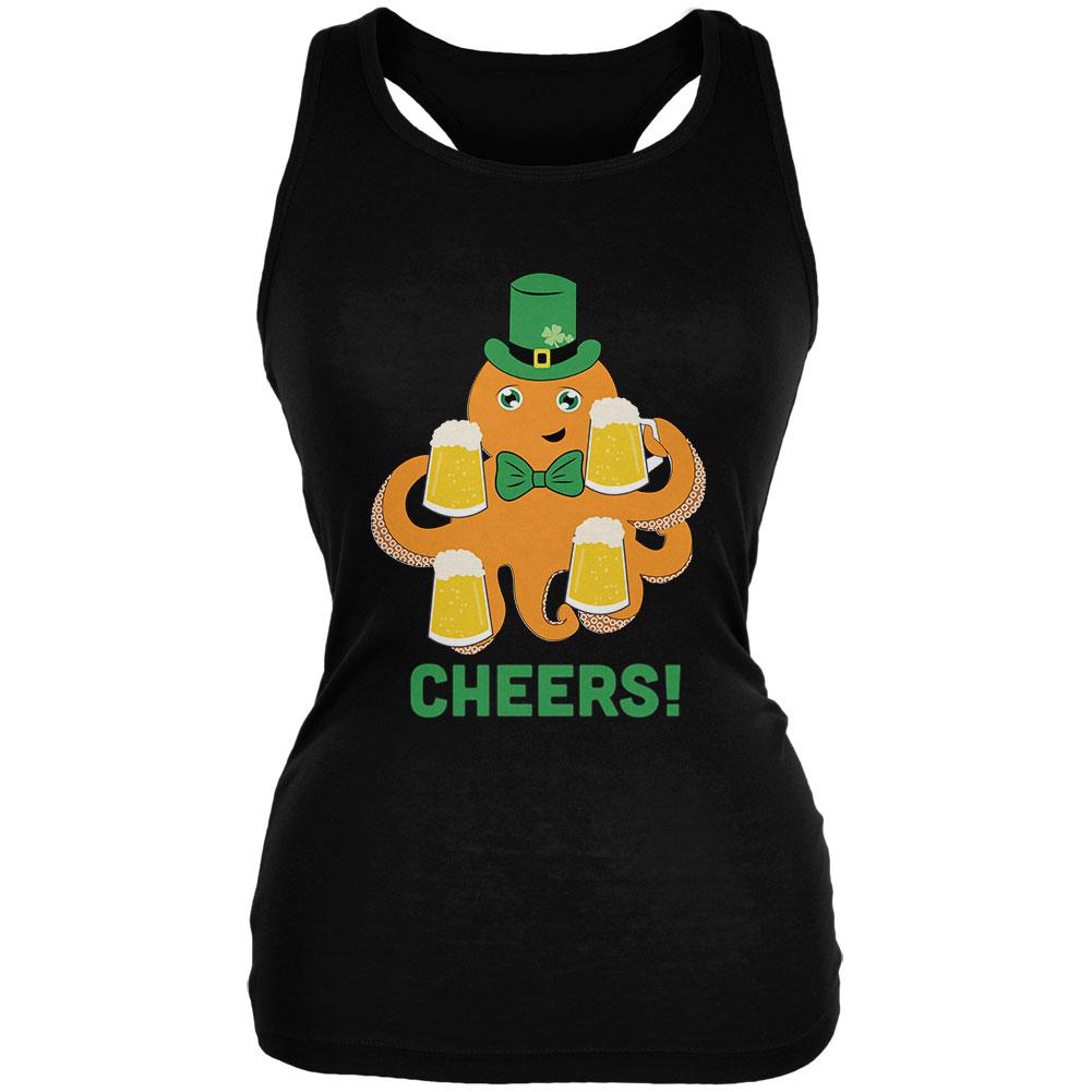 Celebrate St Patricks Day in style with this adorable tank. This Animal World design is printed on a 100% cotton juniors racerback tank top, featuring an octopus holding beer steins with the text "Cheers".
